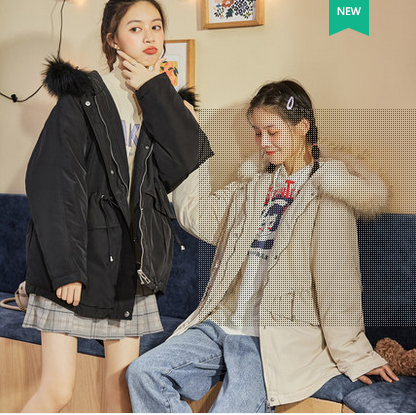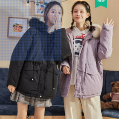 唐狮2020年冬新款连帽仿毛领韩版宽松女棉服中长款学生休闲潮时尚