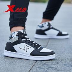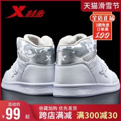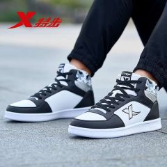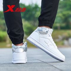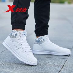特步男鞋高帮板鞋2020新款秋冬季防水皮面小白鞋休闲鞋韩版运动鞋