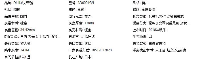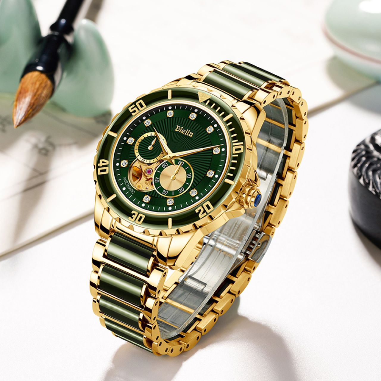 艾帝雅手表男士机械表全自动翡翠玉石国产腕表正品潮流金表商务款