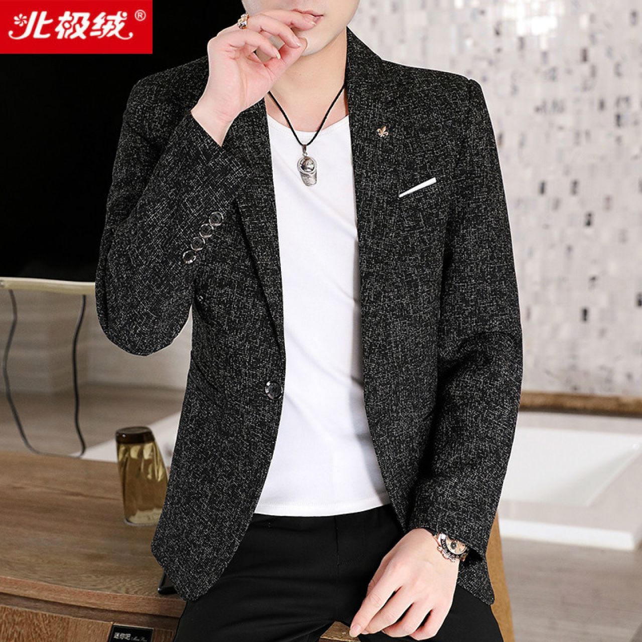 北极绒休闲西装男商务正装修身韩版帅气男士西服外套潮流小礼服 礼服