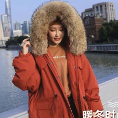羽绒服女中长款大毛领网红韩版白鸭绒