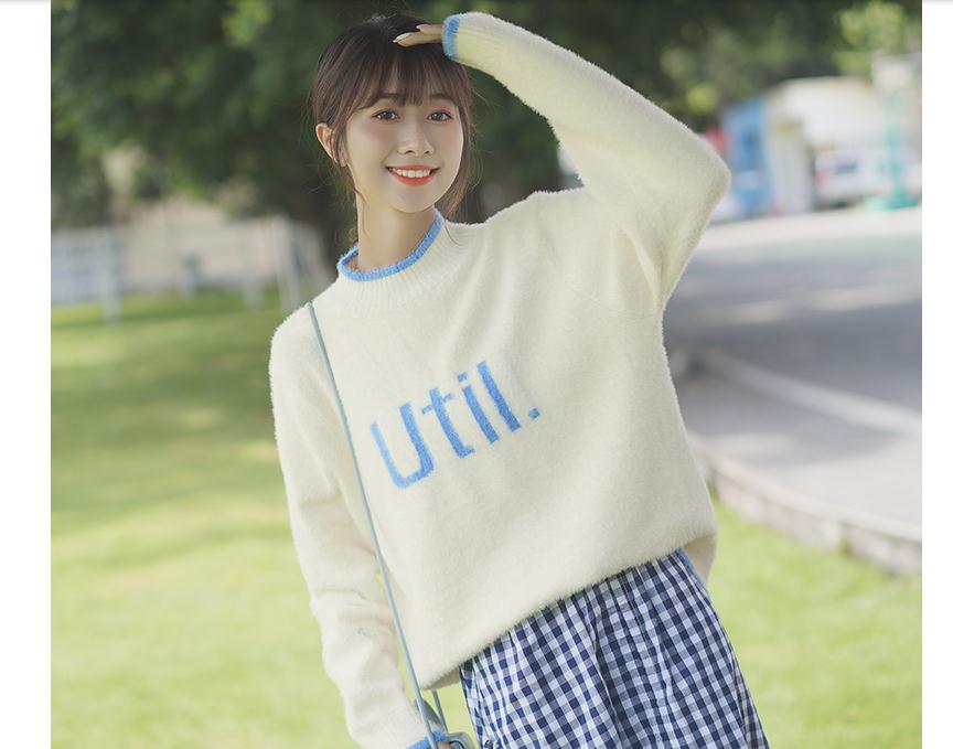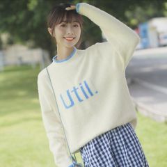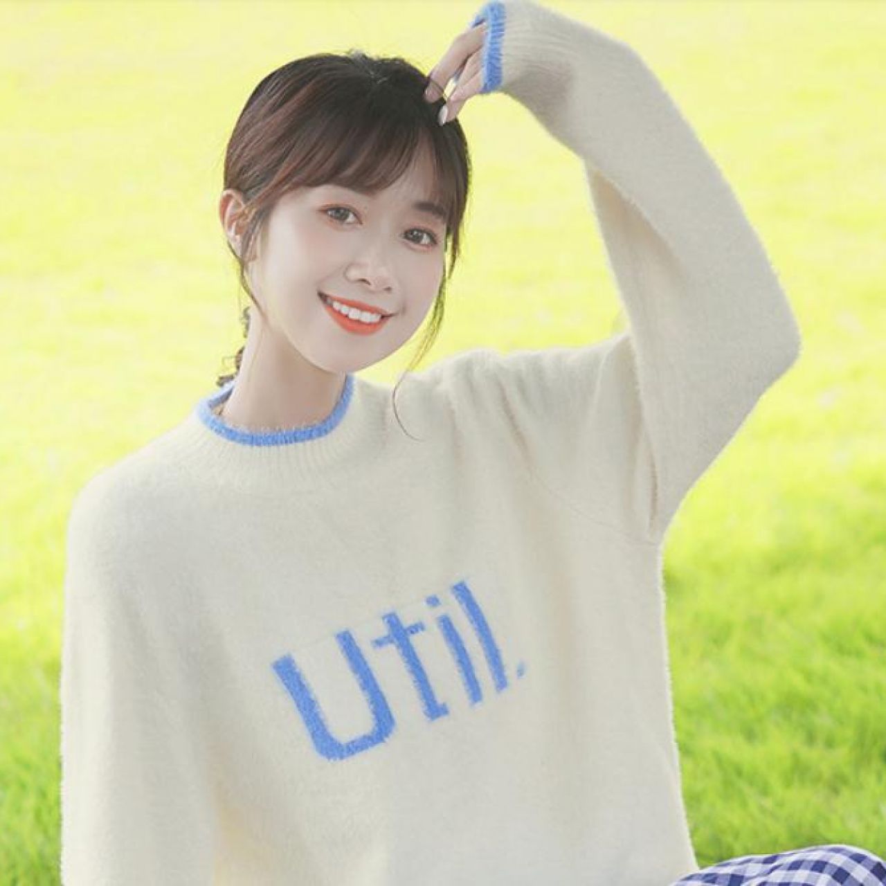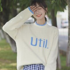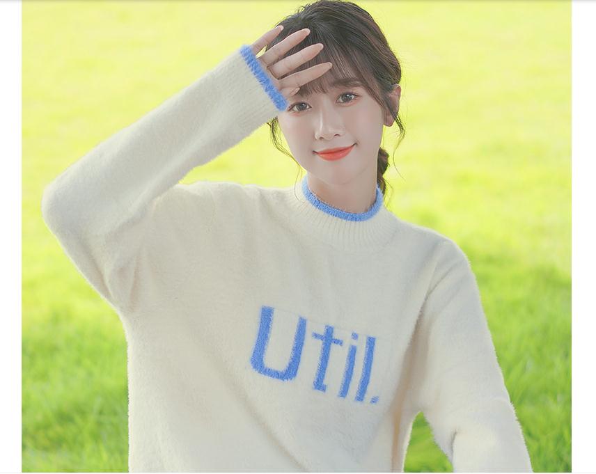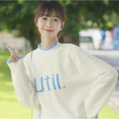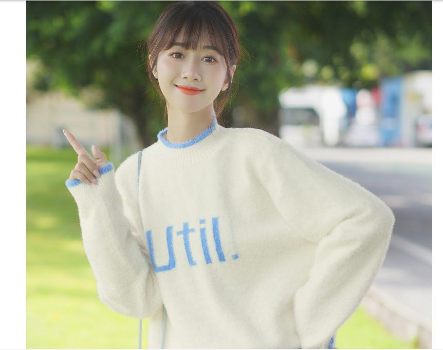 秋冬毛绒针织衫女宽松保暖字母上衣内搭半高领毛衣
