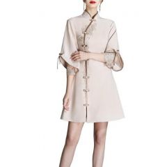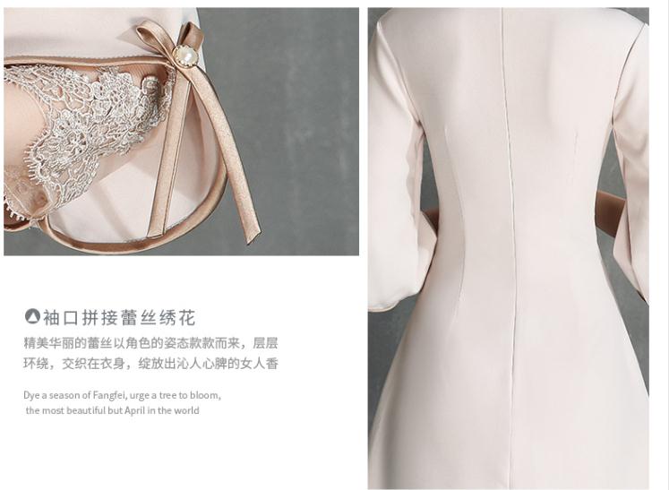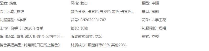 适用年龄: 18-25周岁材质: 四面弹尺码: XXL XXXL 定做尺码联系客服 XS S M L XL: 简约腰型: 中腰流行元素: 拉链颜色分类: 卡其色 酒红色 银灰色 豆沙粉 卡其色02 卡其色03袖型: 喇叭袖礼服摆型