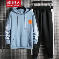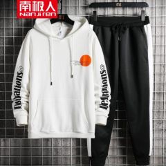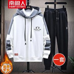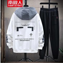 南极人卫衣男2020秋冬季外套男加绒连帽打底衫一套运动卫衣套装男装 2061白色(卫衣+裤子) L