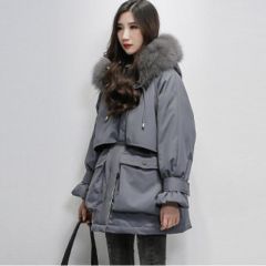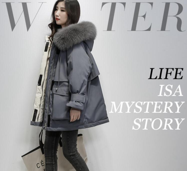 鸭鸭服饰(yaya)羽绒服女中长款 2020年收腰加厚韩版时尚小个子派克服冬季外套 灰色 M