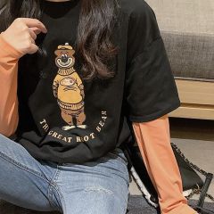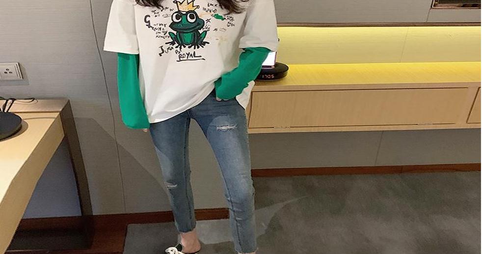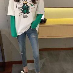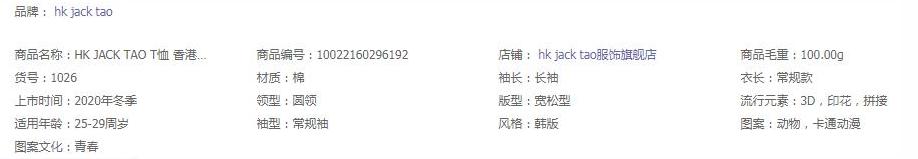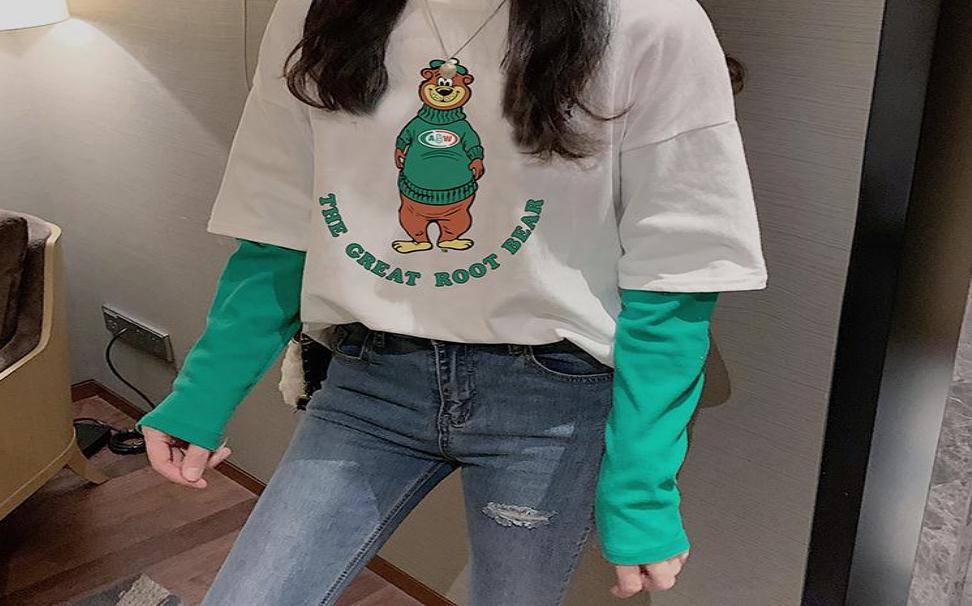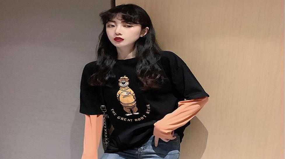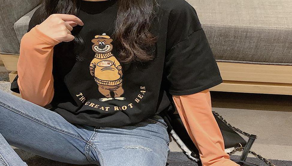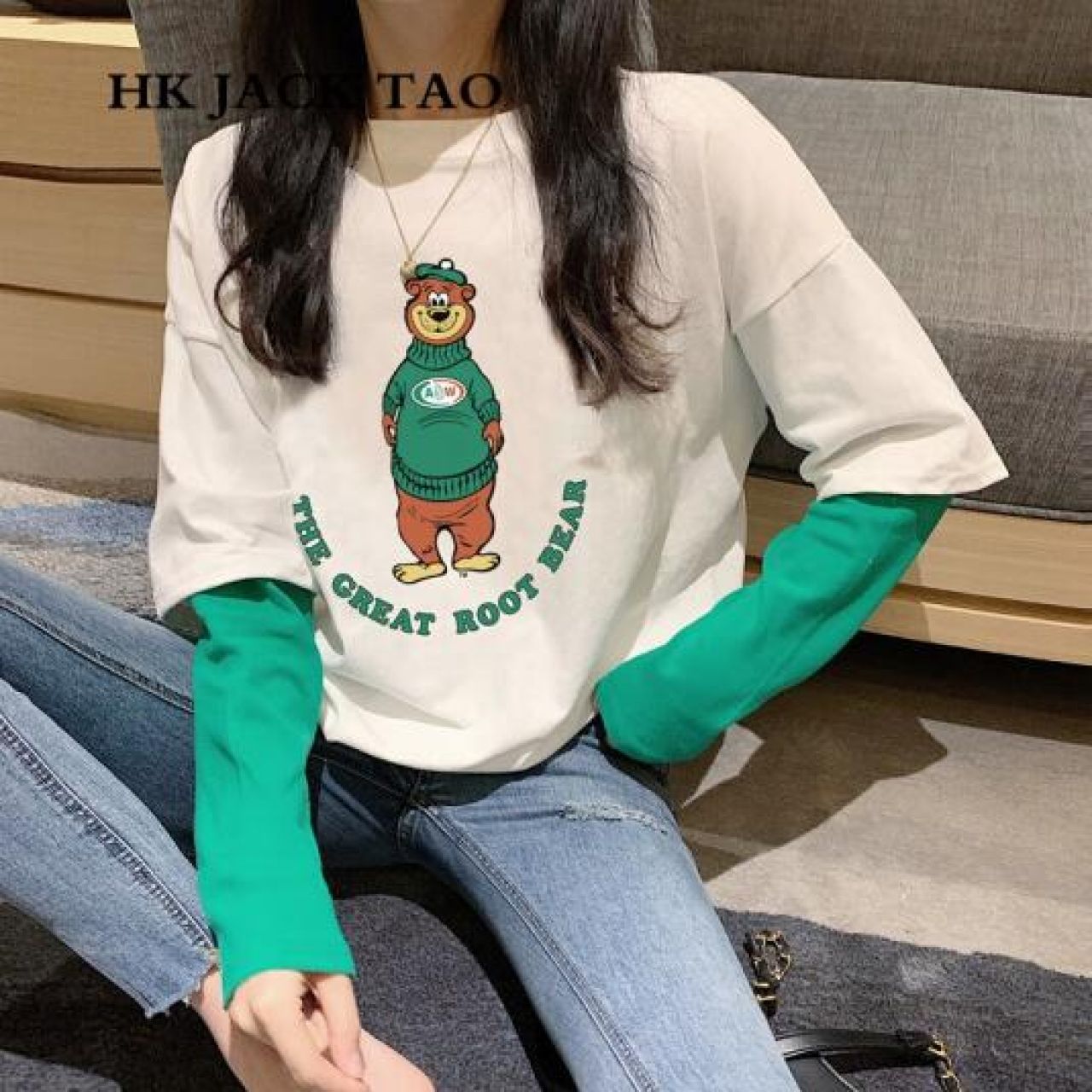 HK JACK TAO T恤 香港潮牌打底衫女秋冬装新款2020韩版长袖t恤宽松印花洋气假两件上衣