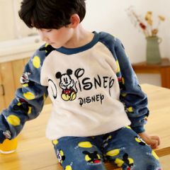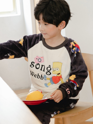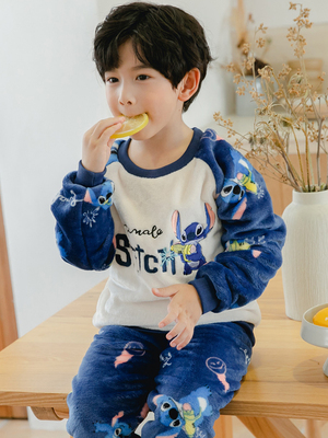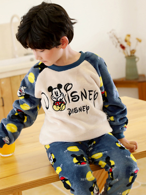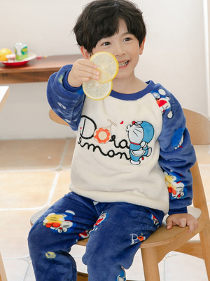 儿童睡衣男童法兰绒加厚小男孩卡通家居服宝宝珊瑚绒春秋冬季套装