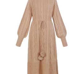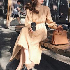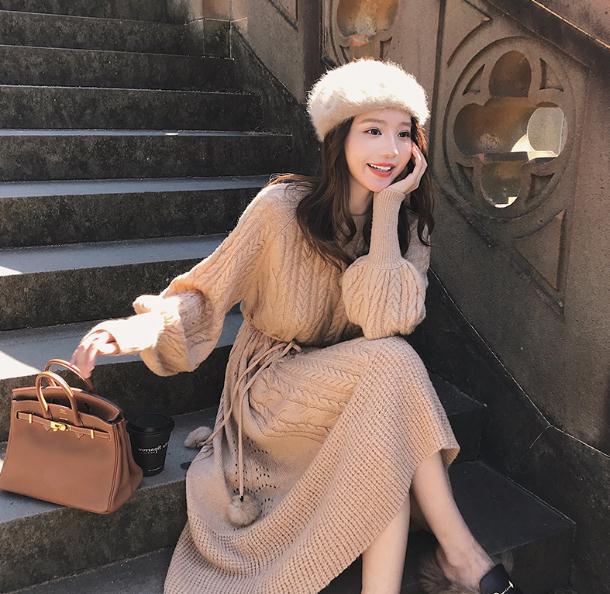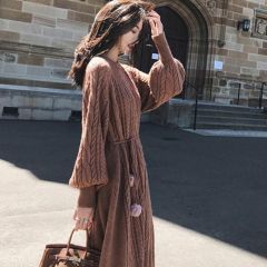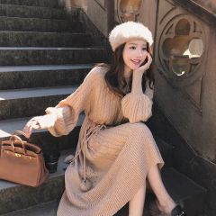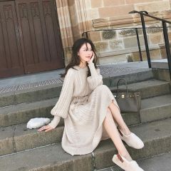 过膝仙气毛衣裙女秋冬复古宽松套头外穿修身针织连衣裙潮