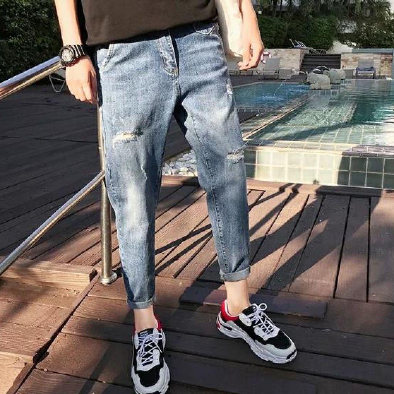 南极人牛仔裤男冬季加绒加厚男装韩版时尚潮流男士小脚裤子