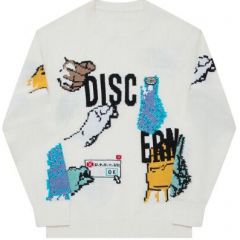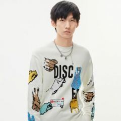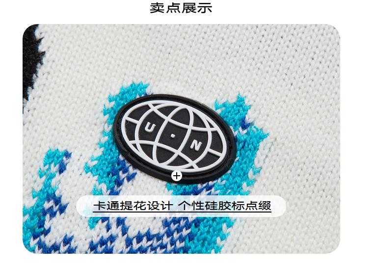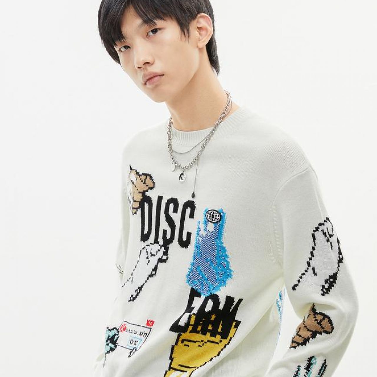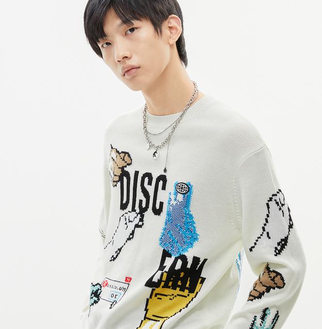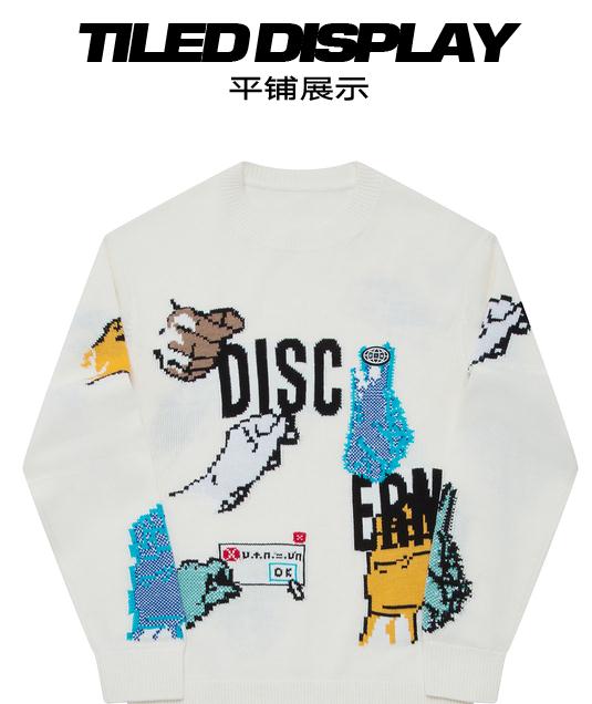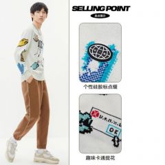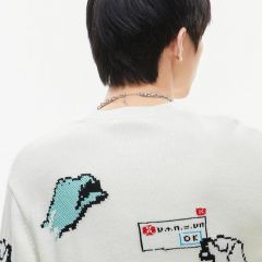 商场同款gxgjeans男装2020冬新款圆领毛衣卡通提花毛衫男休闲韩版针织衫潮 白色