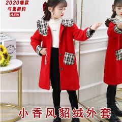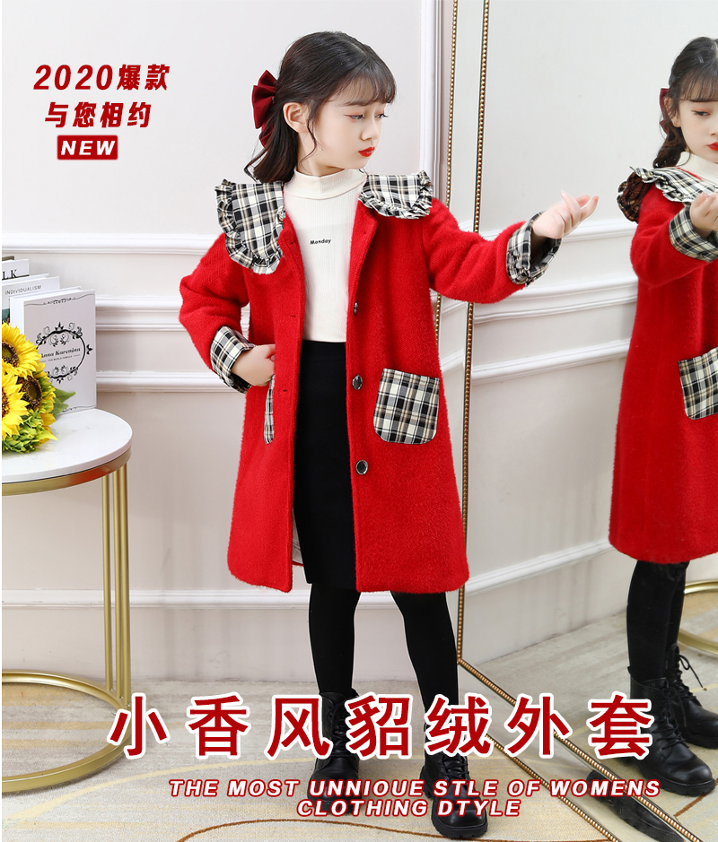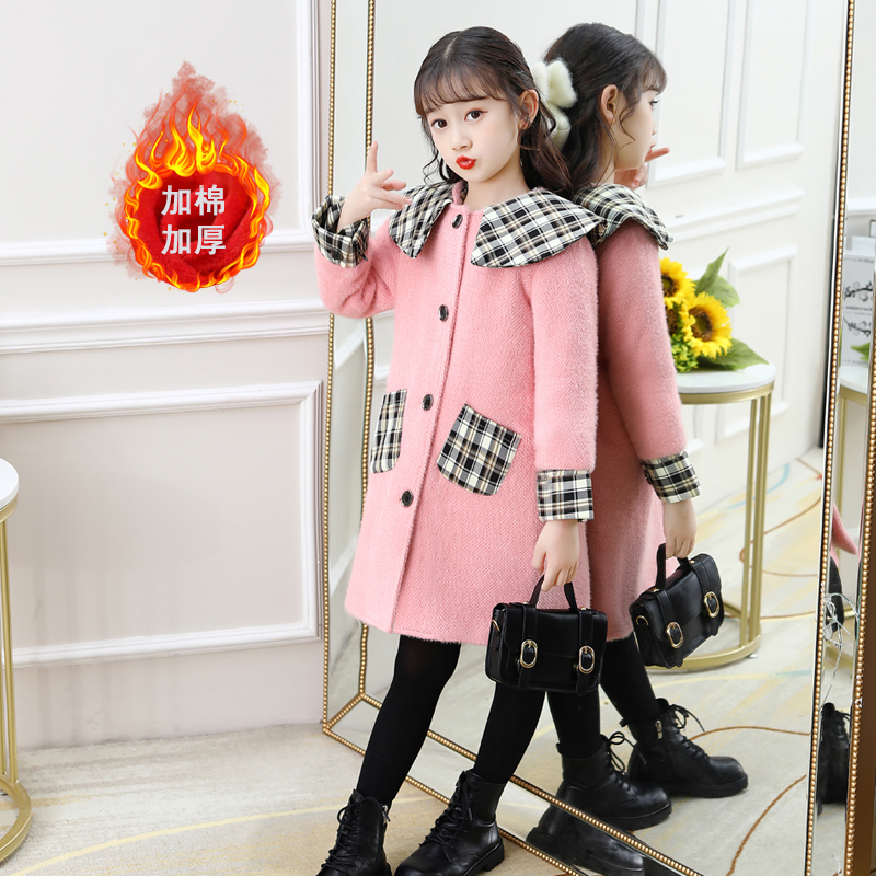 儿童外套毛呢水貂绒秋冬加棉洋气中长款冬装女童呢子大衣童装女