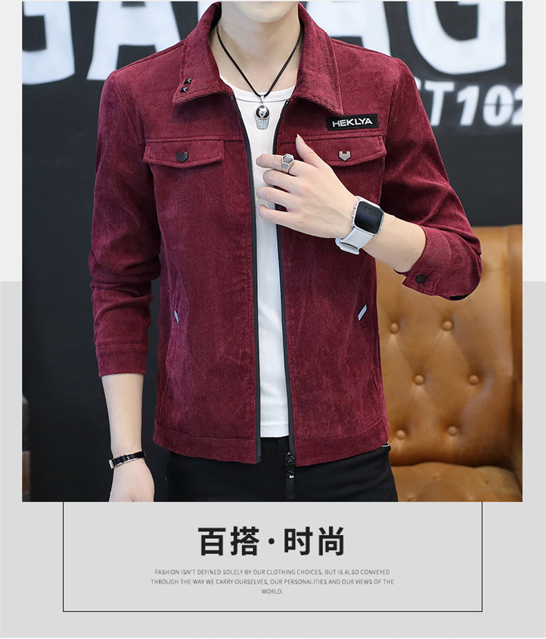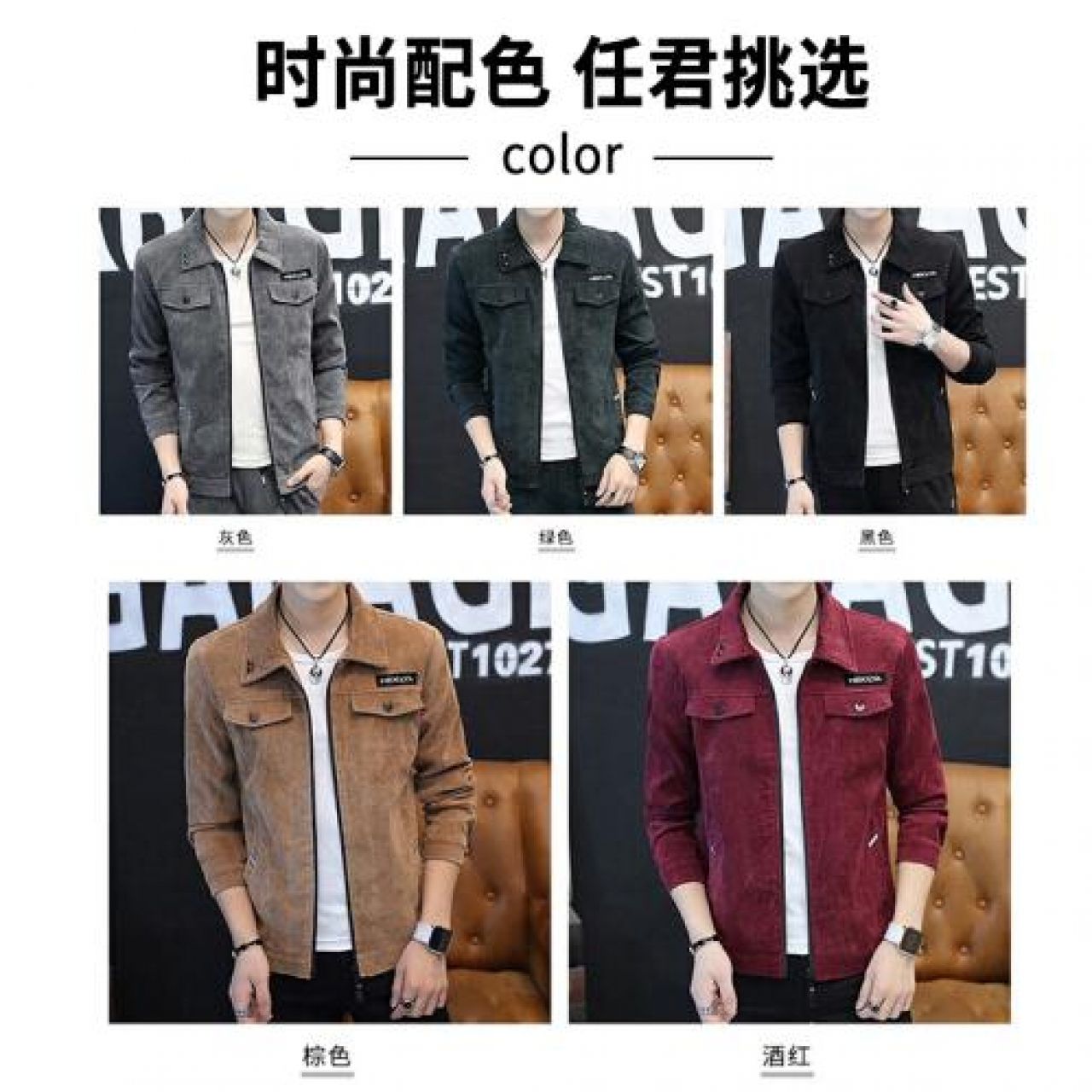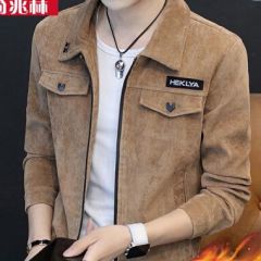 俞兆林 外套男2020新款秋季灯芯绒翻领夹克衫男士秋冬季修身工装茄克套装男装秋装衣服褂子加绒 黄色