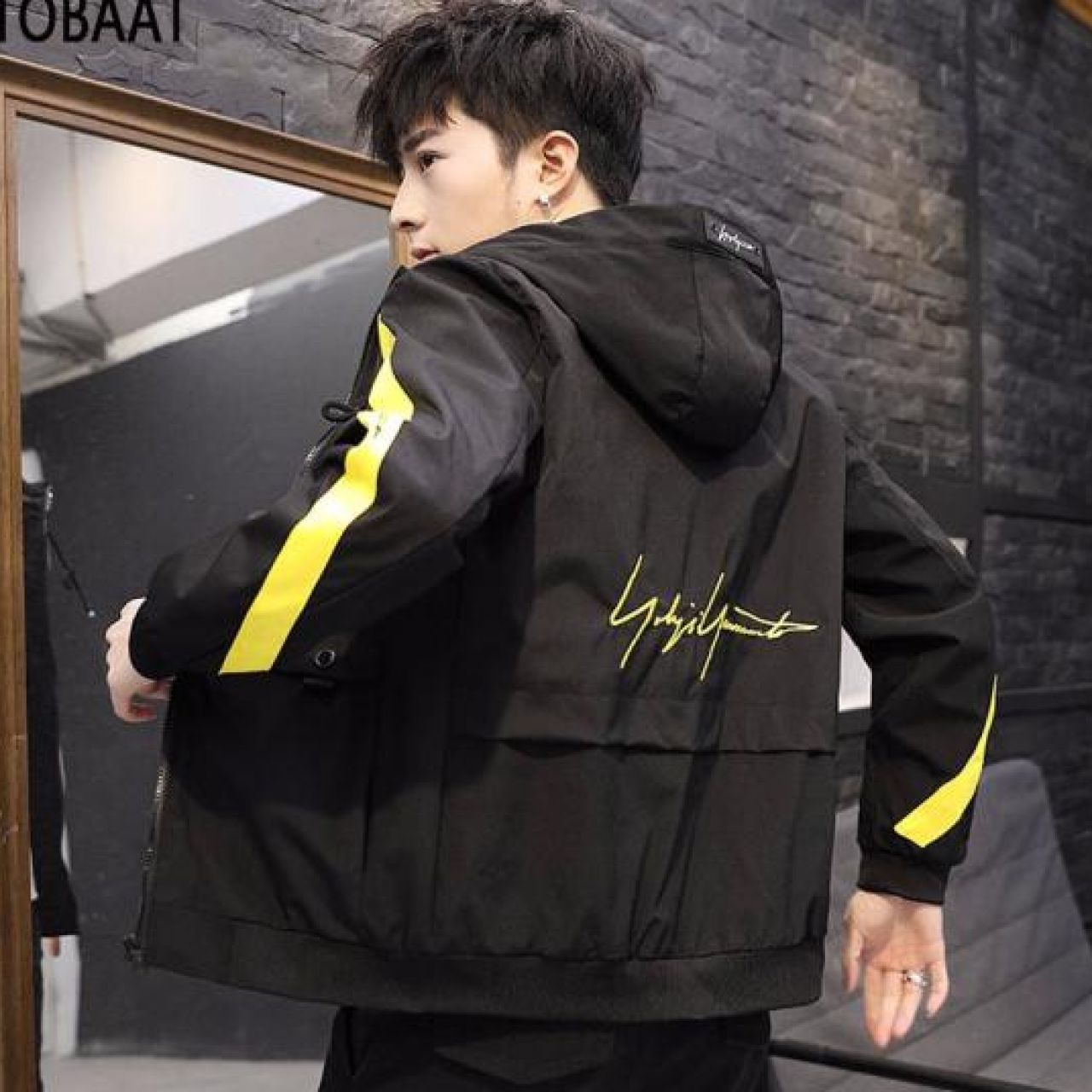 TOBAAT 外套男春秋季工装夹克男装休闲连帽牛仔外套衣服男薄款韩版修身潮流服