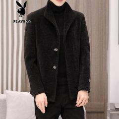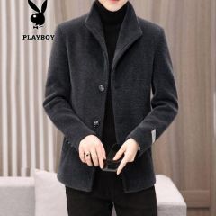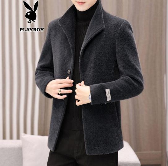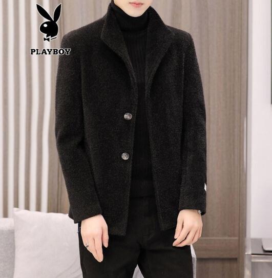 花花公子 秋冬季韩版秋季短款西装立领夹克男士毛呢大衣加厚棉衣服男装冬装纯色外衣