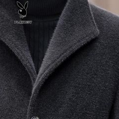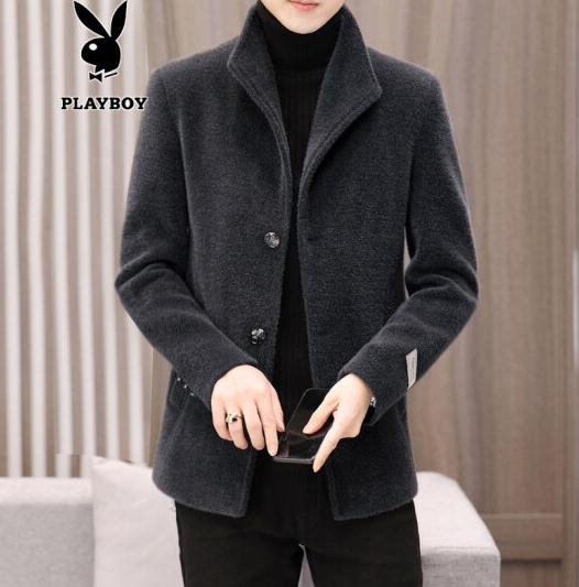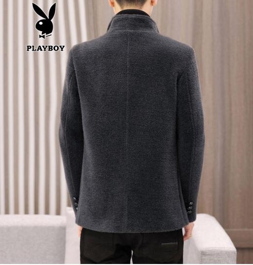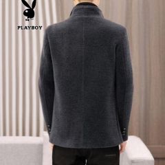 花花公子 秋冬季韩版秋季短款西装立领夹克男士毛呢大衣加厚棉衣服男装冬装纯色外衣 灰色