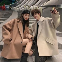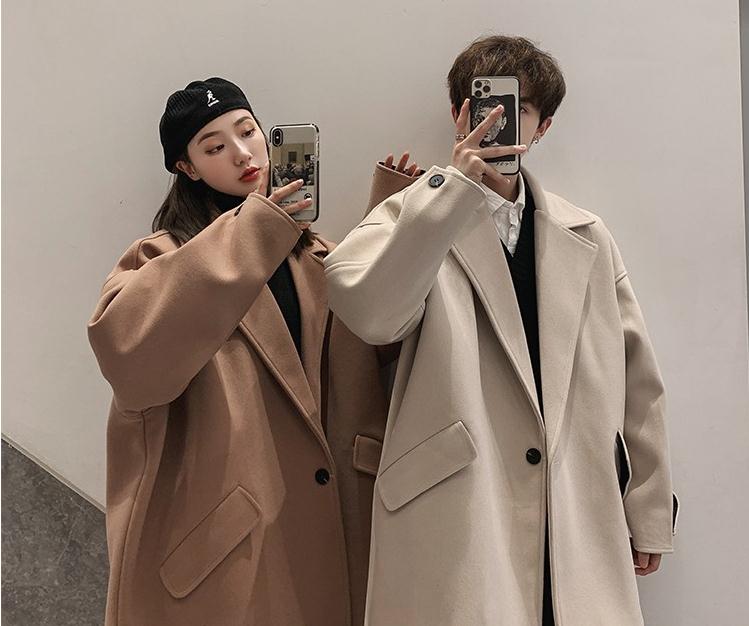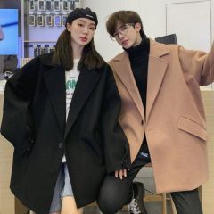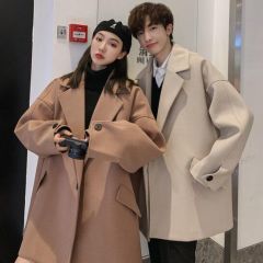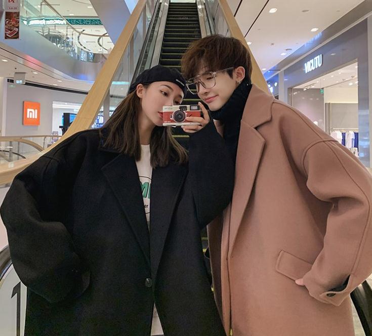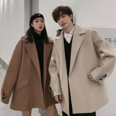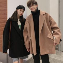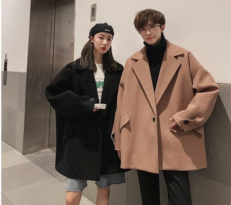 旅藏客冬季情侣装毛呢大衣男短款韩版潮流呢料小西装呢子风衣小个子外套 黑色 S
