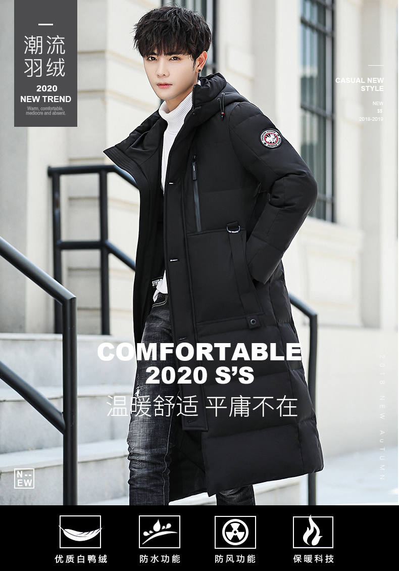冬季2020新款羽绒服男中长款品牌帅气潮流长款过膝加厚外套潮牌