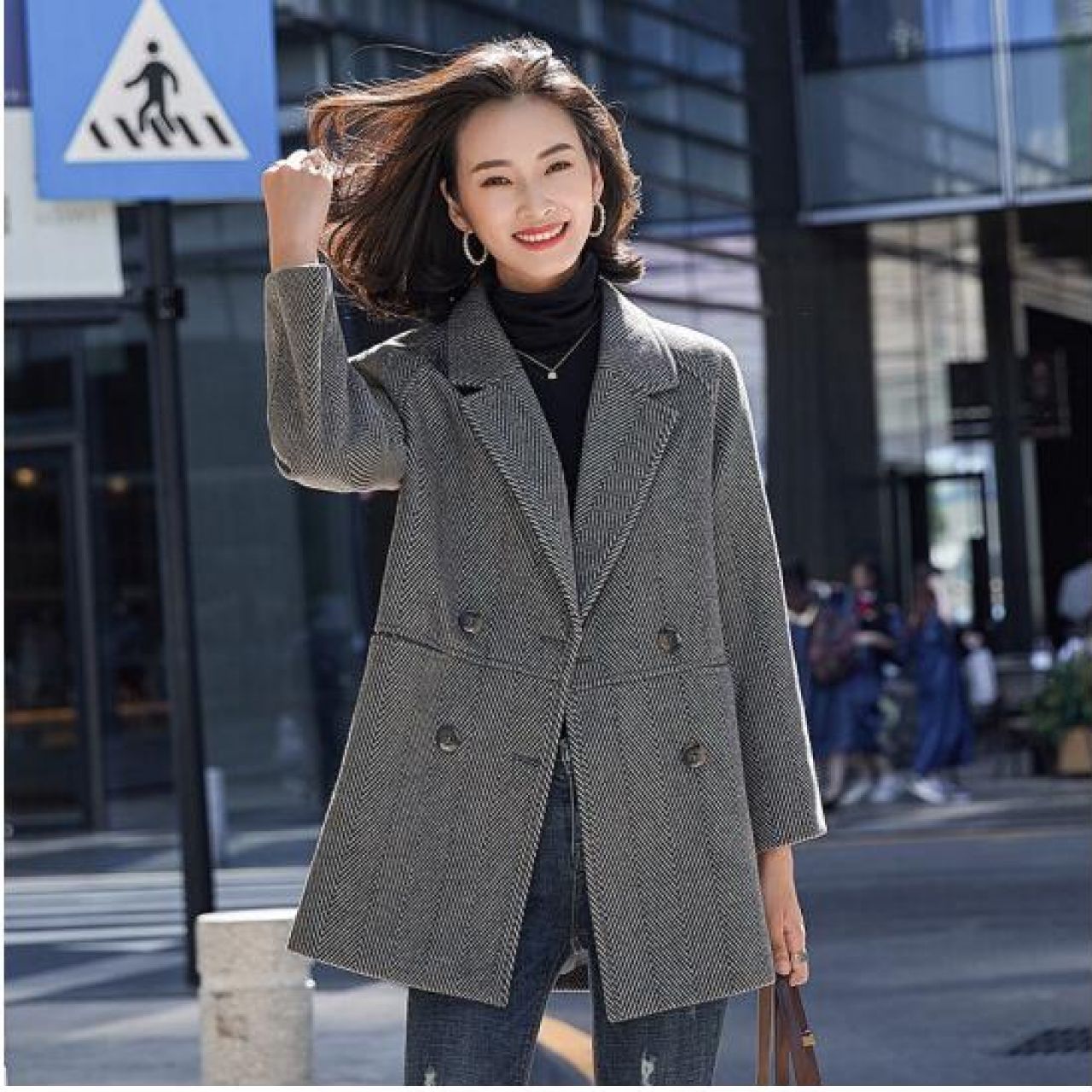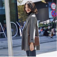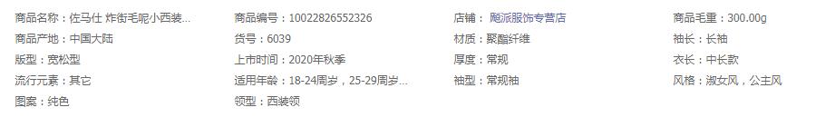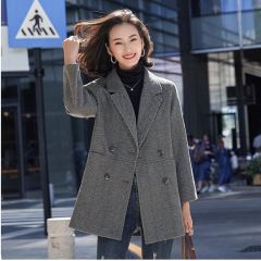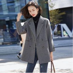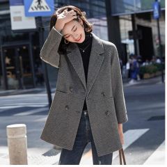 佐马仕 炸街毛呢小西装外套女秋冬新款韩版休闲英伦风中长款宽松西服女上衣网红潮款 6039灰色 XXL