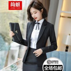 职业装女装套装2020秋冬新款时尚气质小西装商务正装大学生面试西服工作服 黑色单件西装 M