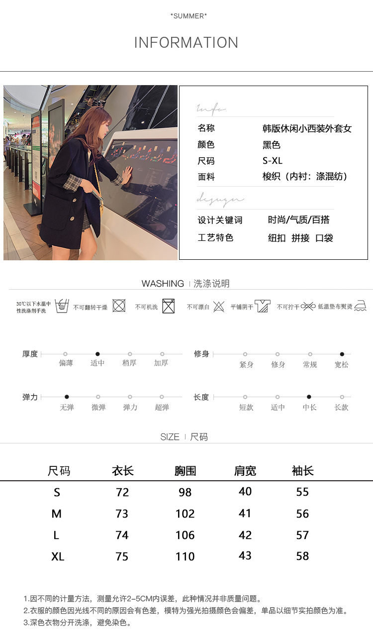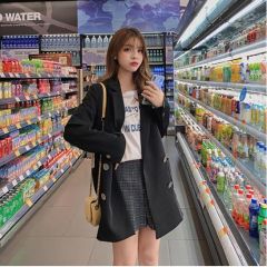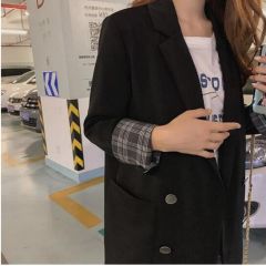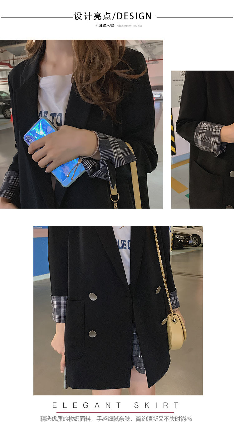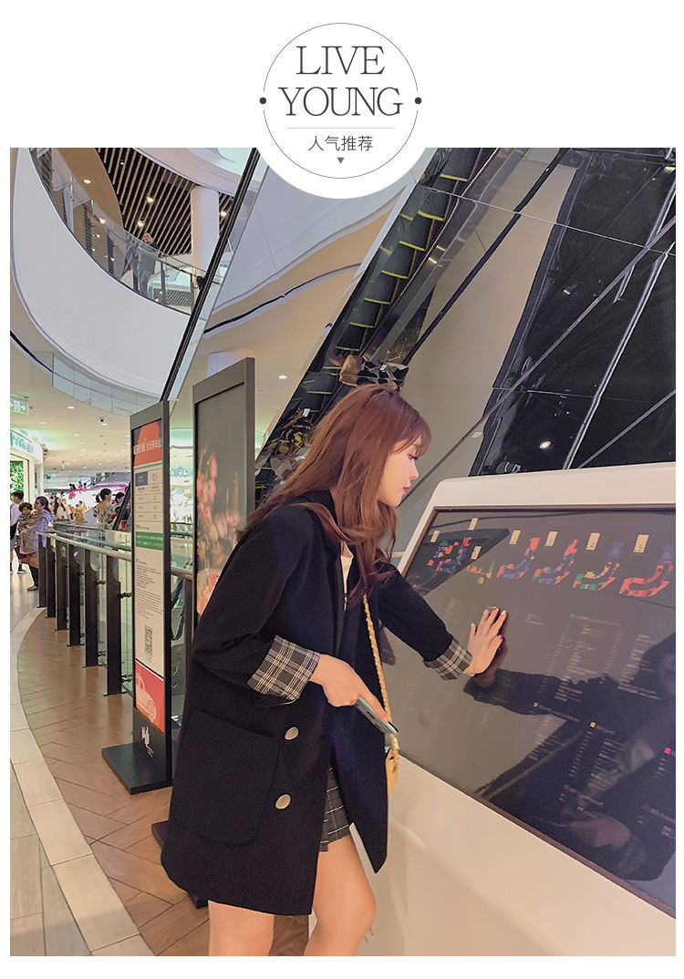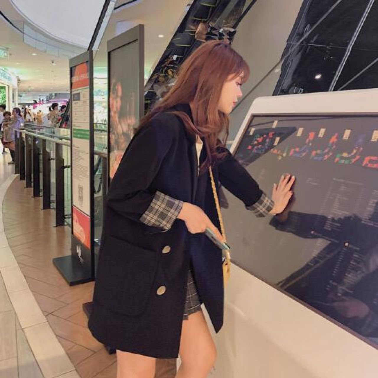 曼卡玉2020秋冬季新款小西装西服女中长款春秋季休闲韩版宽松学生女神范翻袖格子小西装外套风衣上衣服