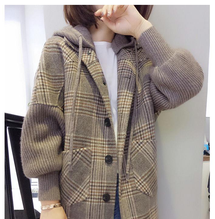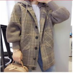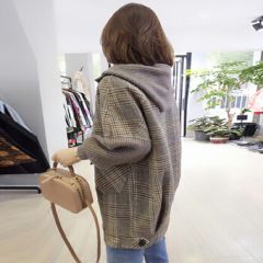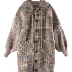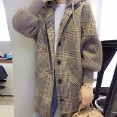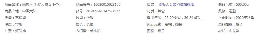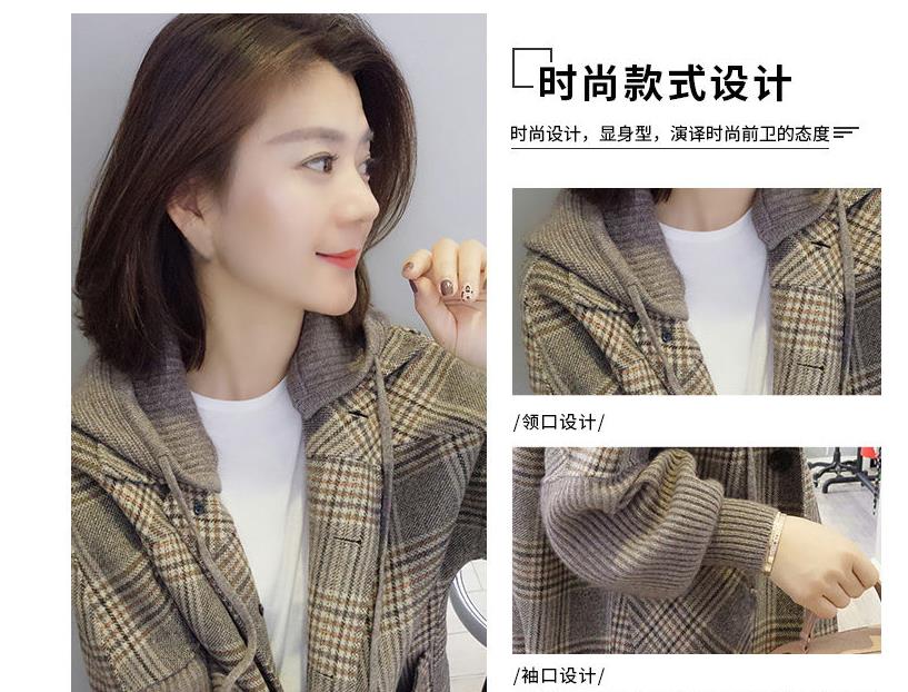 南极人 毛呢大衣女小个子中长款秋冬2020新款韩版时尚宽松显瘦千鸟格休闲连帽呢子外套女装