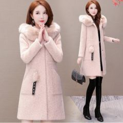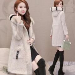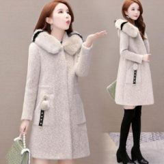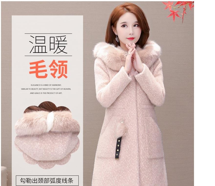 温柔素依人 毛呢大衣女2020秋冬季新款时尚中长款加厚外套遮肚显瘦保暖毛领大衣百搭冬装连帽风衣女
