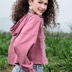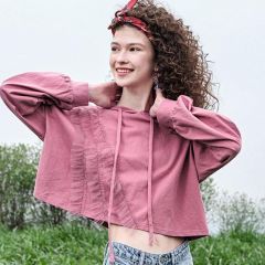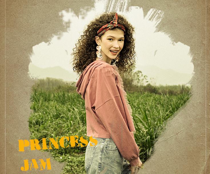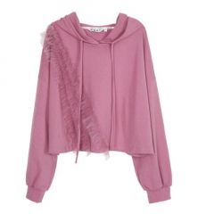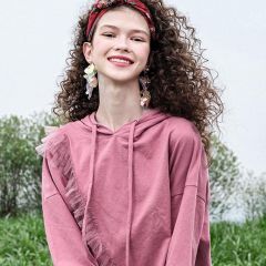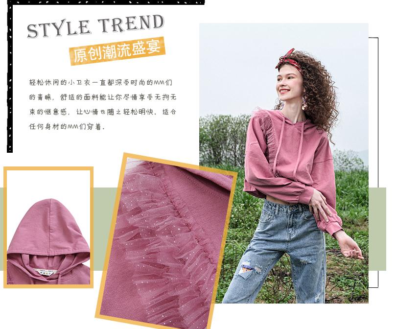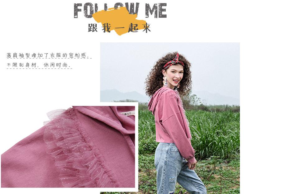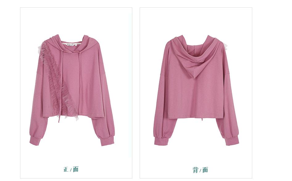 果酱公主森系复古甜美T恤女秋季2020新款网纱荷叶边连帽衫KK 尘飞 玫红色 S