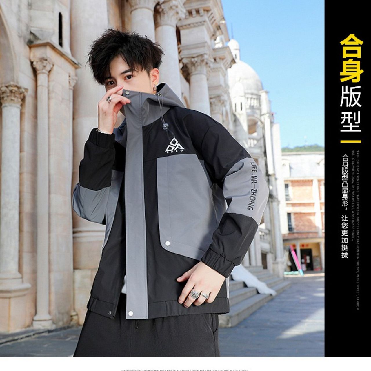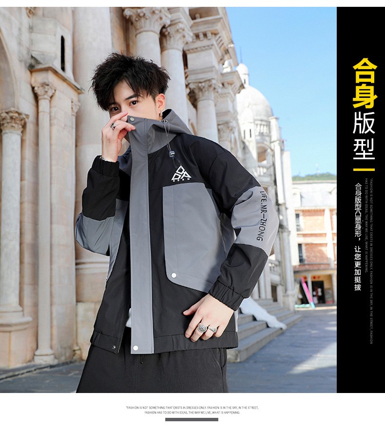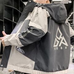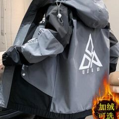 【格兰森】外套男 2020秋冬新品休闲连帽卫衣男加绒飞行员夹克韩版宽松工装风衣情侣男士冲锋衣棉服 灰色