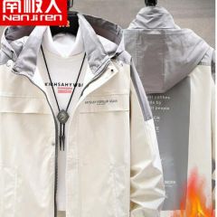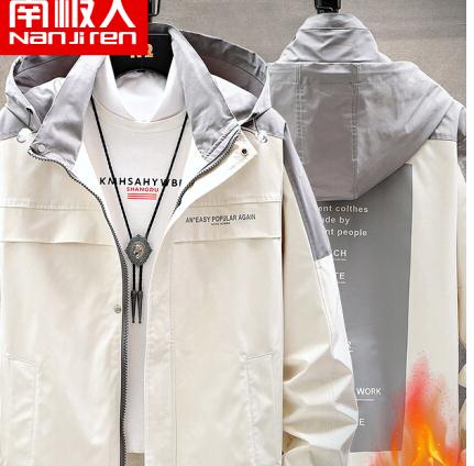 南极人外套男秋冬季2020新款男装夹克男韩版潮流工装棉衣褂子休闲风衣男加绒加厚外套连帽男士修身衣服 黑色
