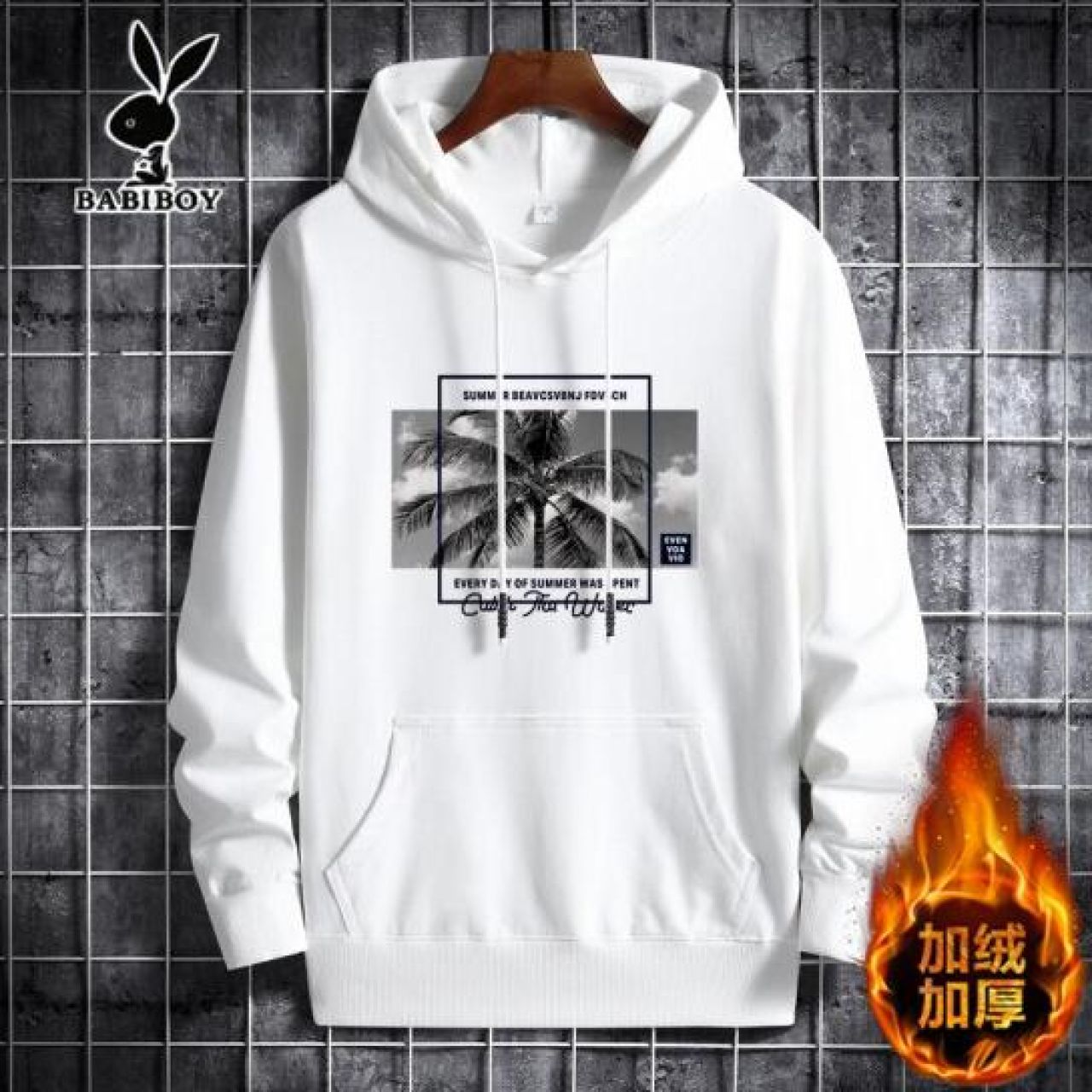 连帽卫衣男2020冬装新款衣服男外套韩版修身大码加绒加厚印花潮牌