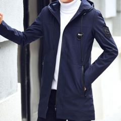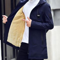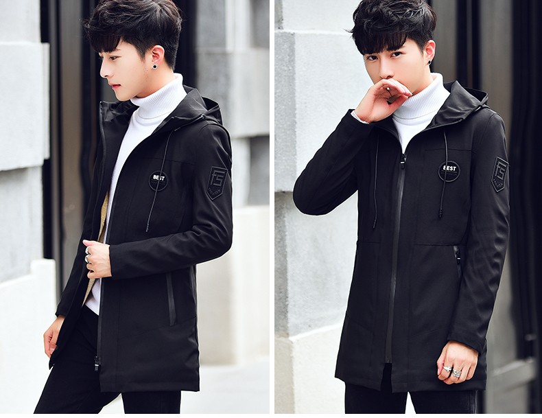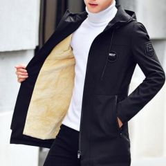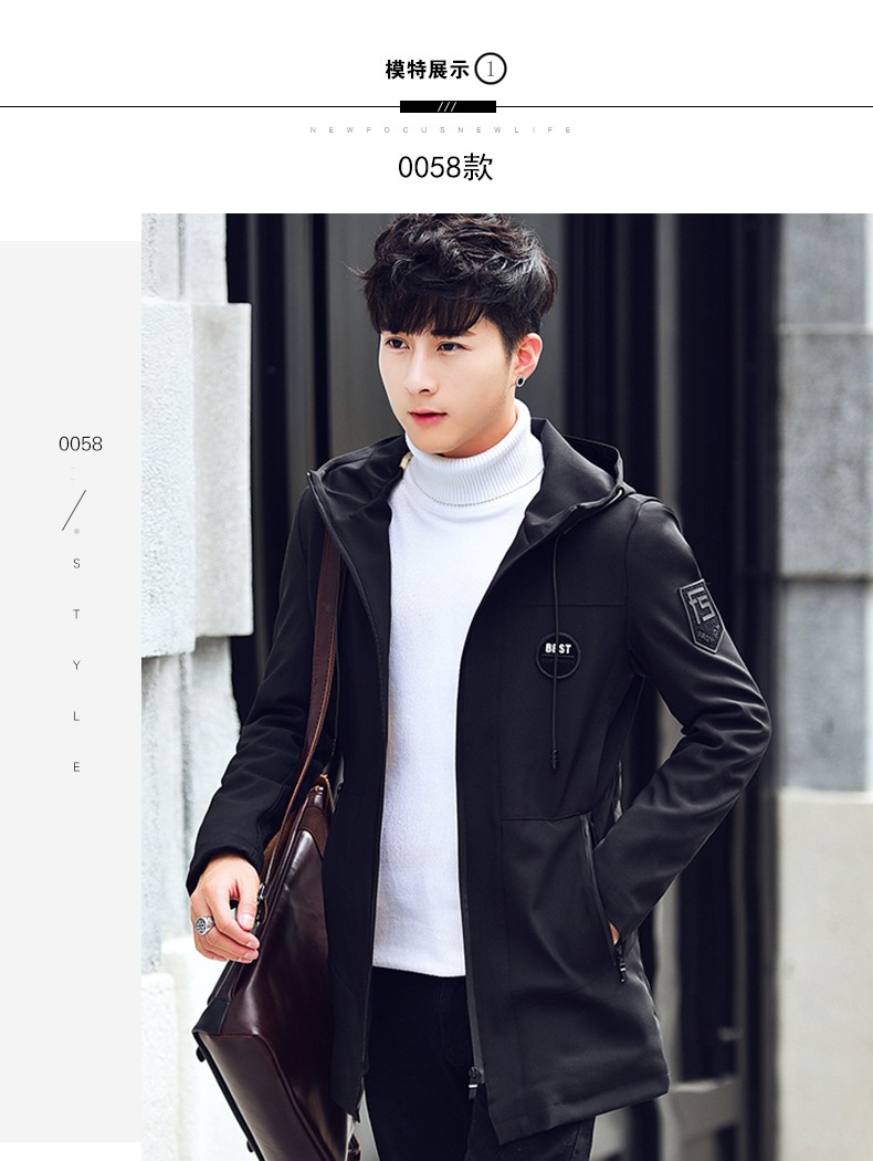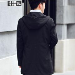 外套男秋冬季加绒加厚连帽夹克男装修身帅气大衣潮流风衣冬装棉服男 黄色