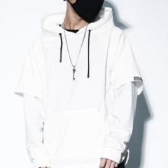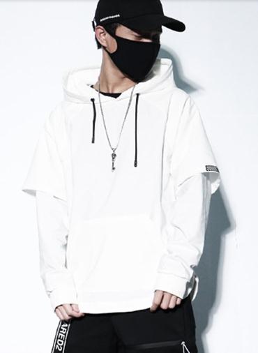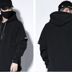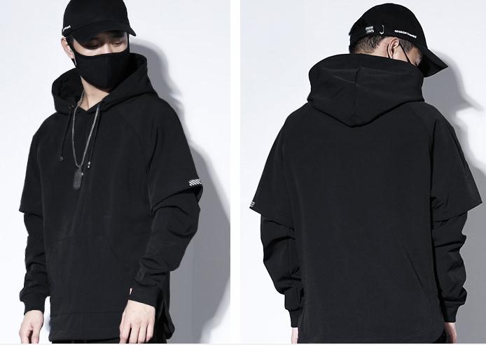连帽加绒卫衣男潮ins假两件卫衣冬季加绒加厚宽松男装加厚bf外套