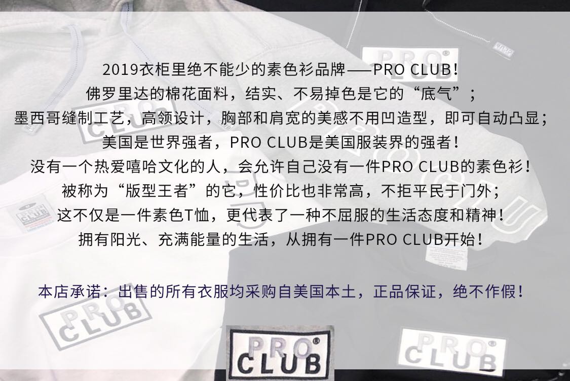 PRO CLUB美国本土套头嘻哈oversized重磅圆领加绒潮流卫衣 正品