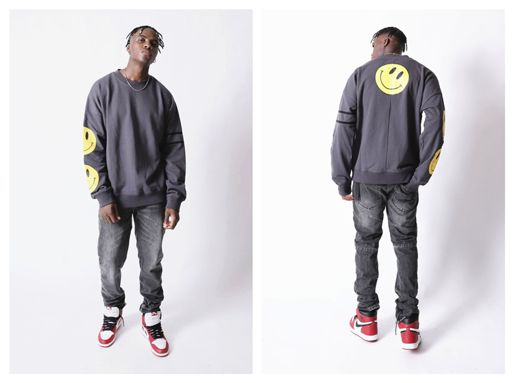 2020S smile笑脸大LOGO印花 侧边条杆 情侣百搭 圆领套头卫衣