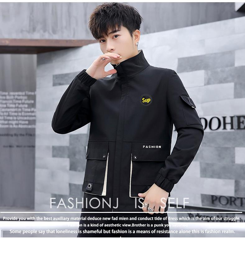 男士外套秋冬季2020新款韩版休闲加绒夹克男立领秋装潮男帅气衣服