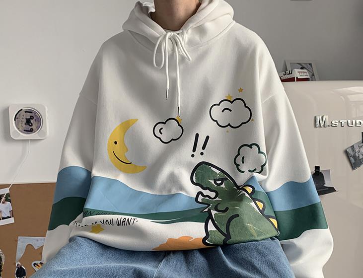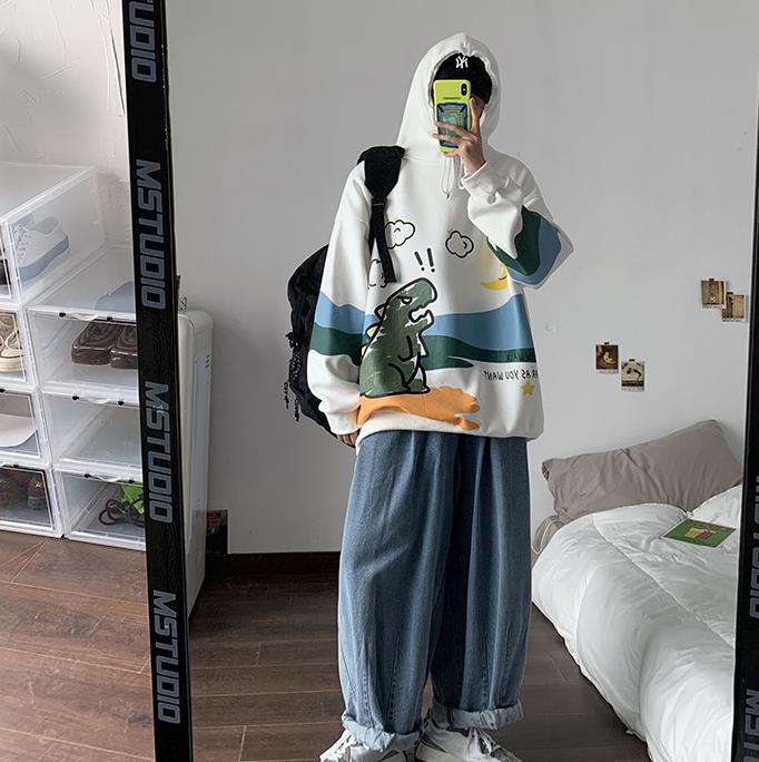 加绒情侣卫衣男连帽韩版潮流帅气ins港风宽松圆领上衣服嘻哈外套