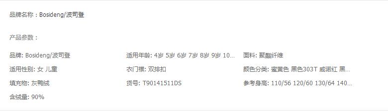 波司登童装儿童男女童2019中长时尚保暖休闲羽绒服T90141511ADS