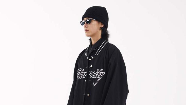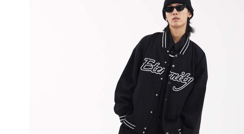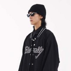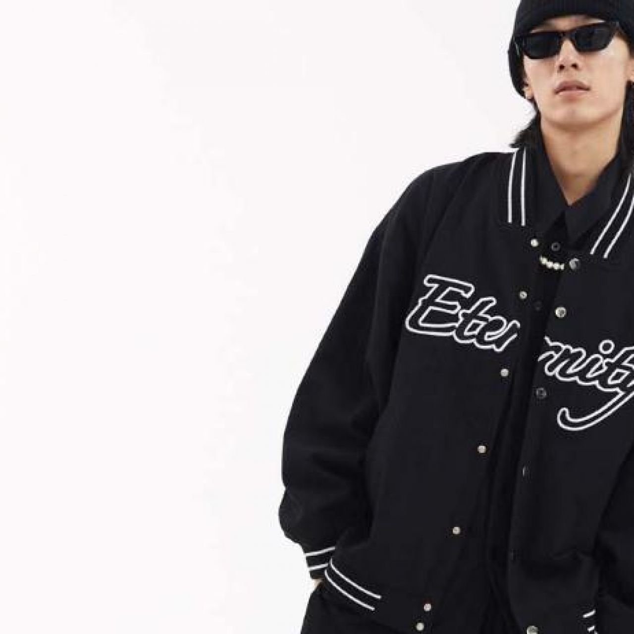 ETERNITY ITA 20FW 潮流嘻哈黑白条纹字母印花棒球服宽松夹克外套