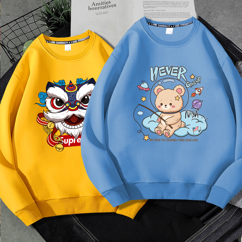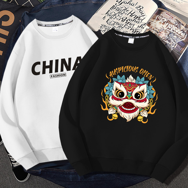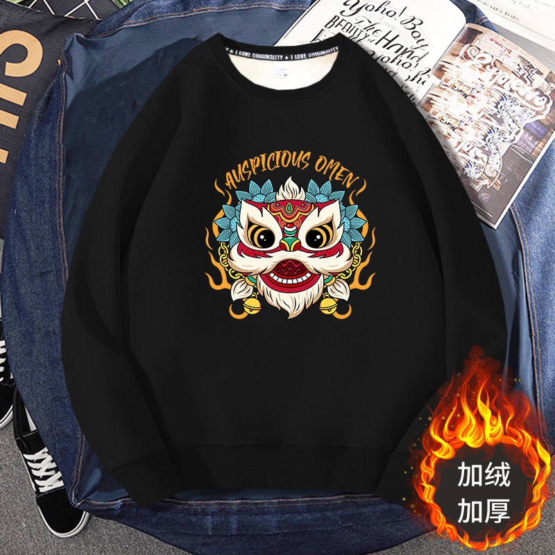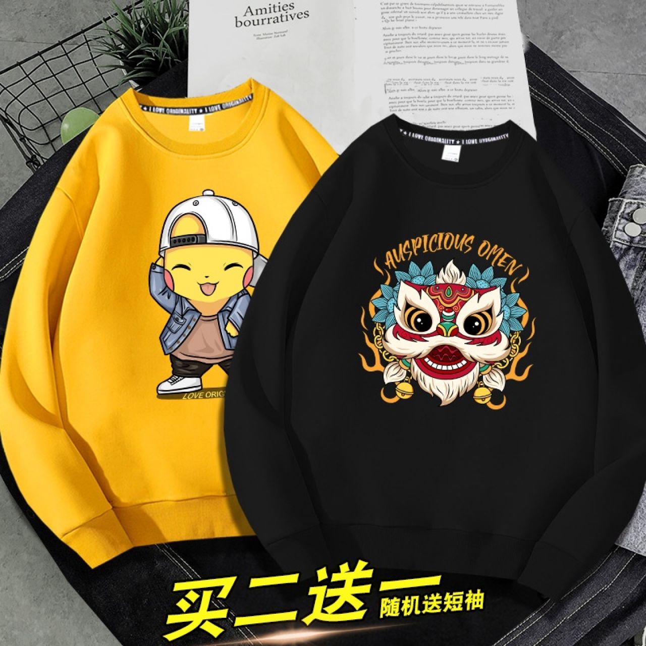 卫衣男潮牌ins圆领宽松青少年秋冬国潮情侣大码加绒加厚男士外套