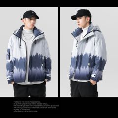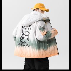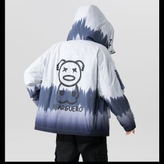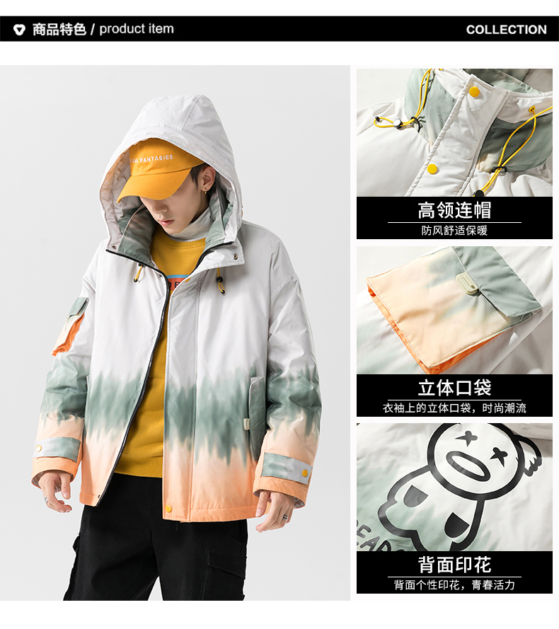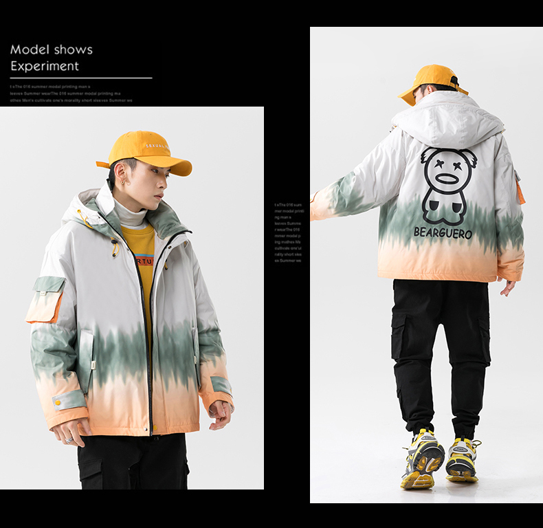 男士外套2020秋冬季新款韩版潮流渐变小熊羽绒服加绒加厚男装上衣