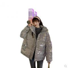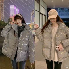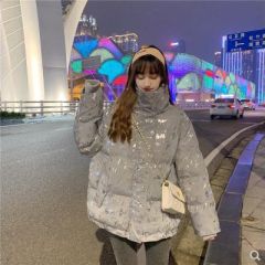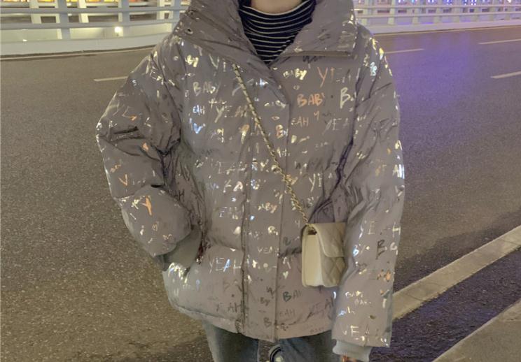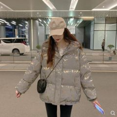 实拍2020冬季拉链面包羽绒服港风女装学生反光宽松保暖款棉衣潮流