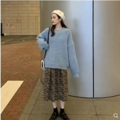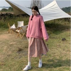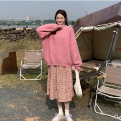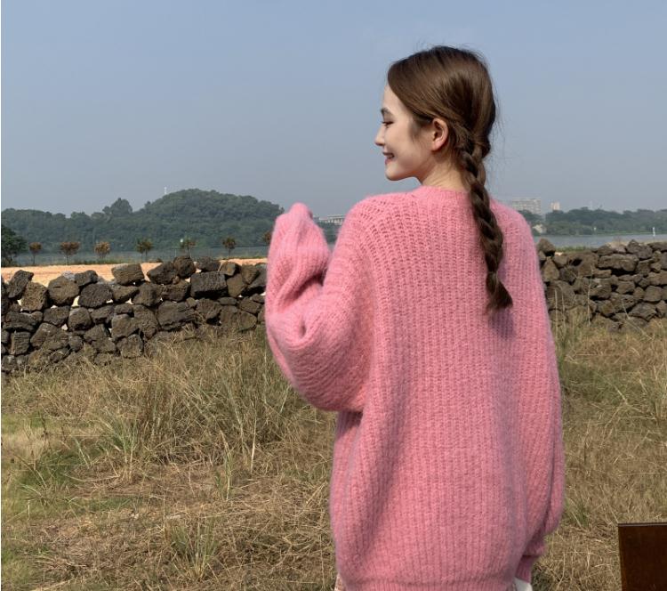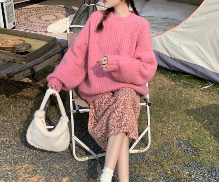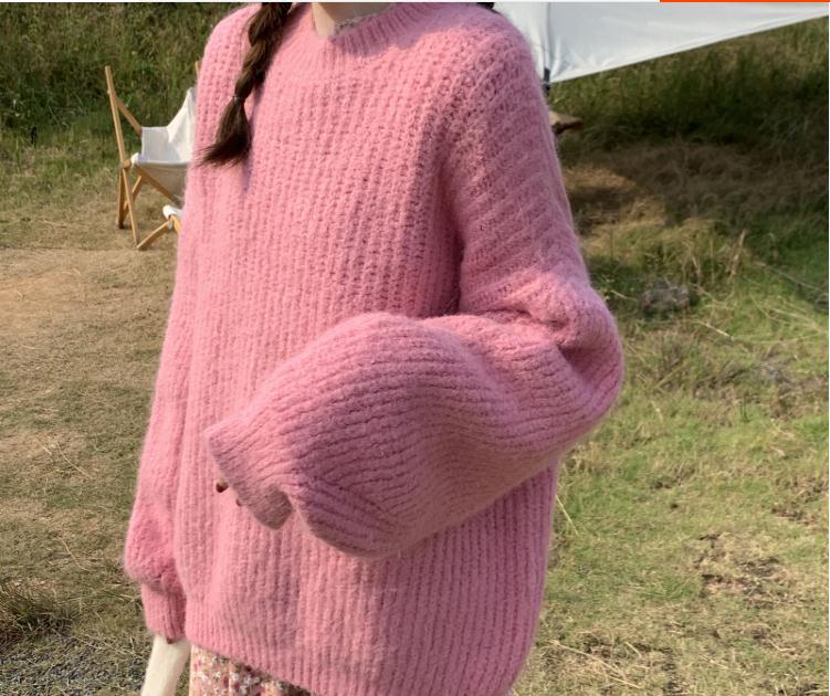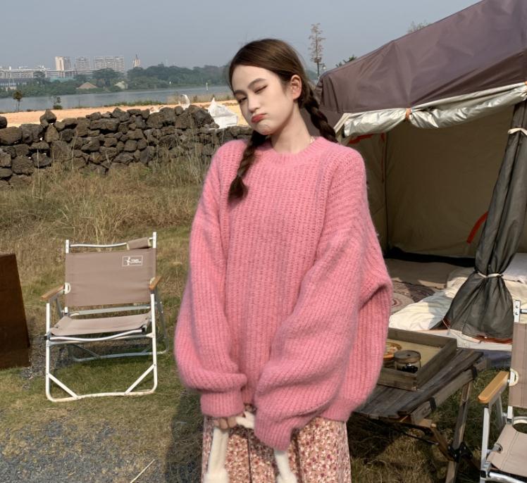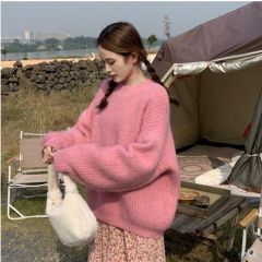 秋冬2020新款韩版慵懒风甜美粉色套头毛衣女宽松洋气外穿日系上衣