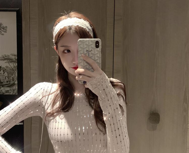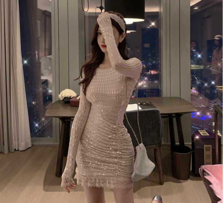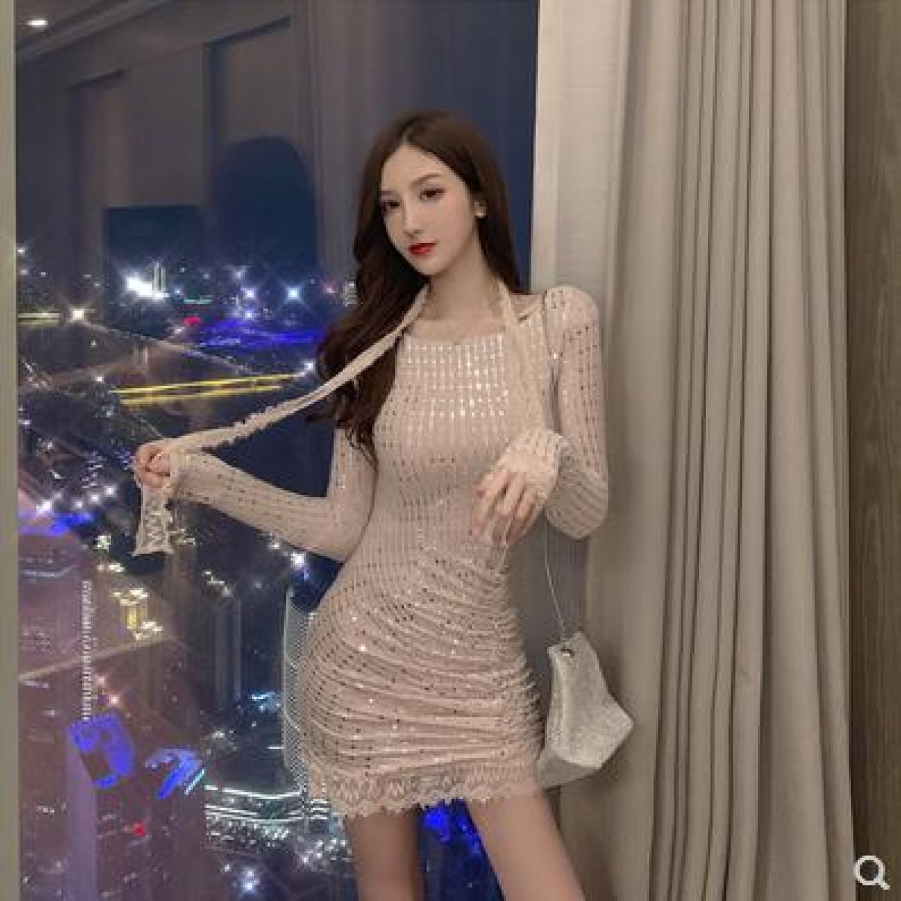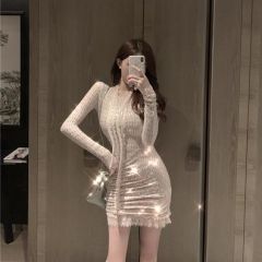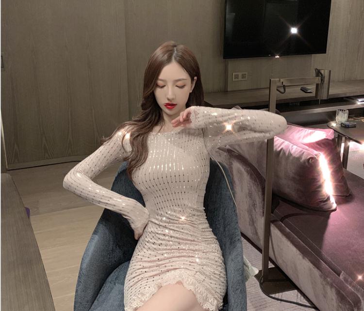 2020年秋季新款时尚性感亮片小礼服心机蕾丝打底包臀连衣短裙女潮