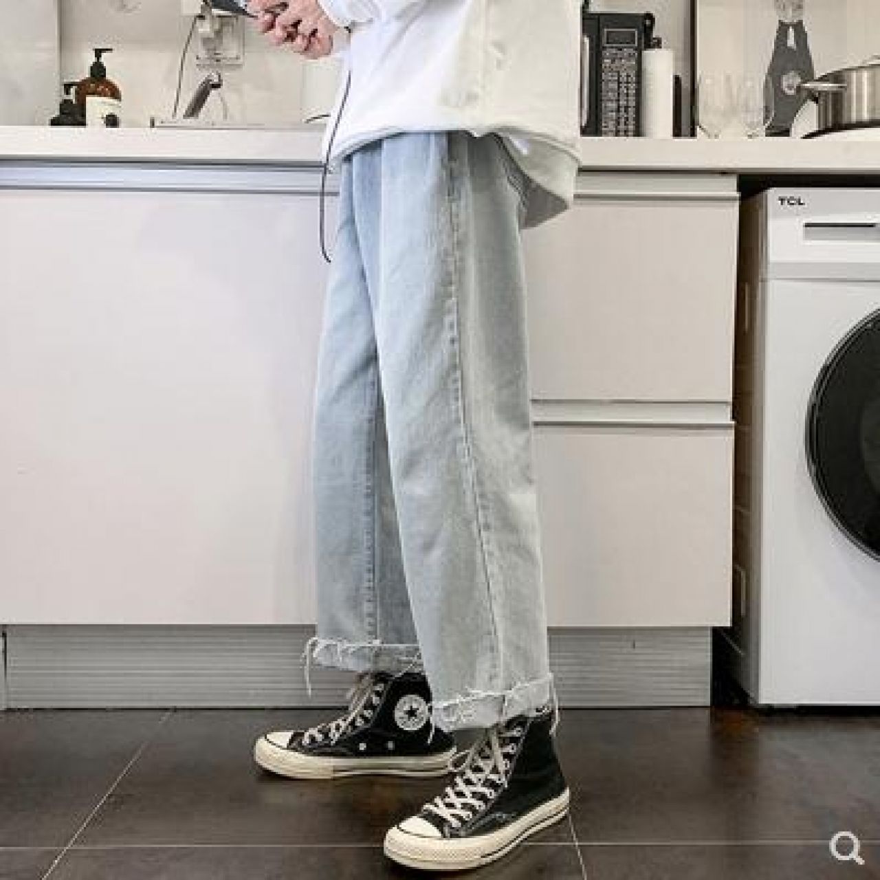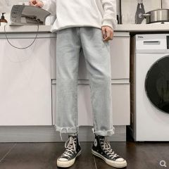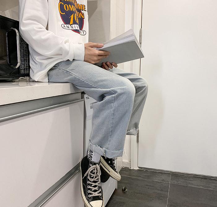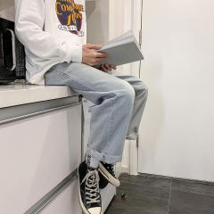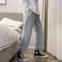 秋季牛仔裤男士港风潮牌宽松直筒阔腿裤青少年学生韩版ins长裤子