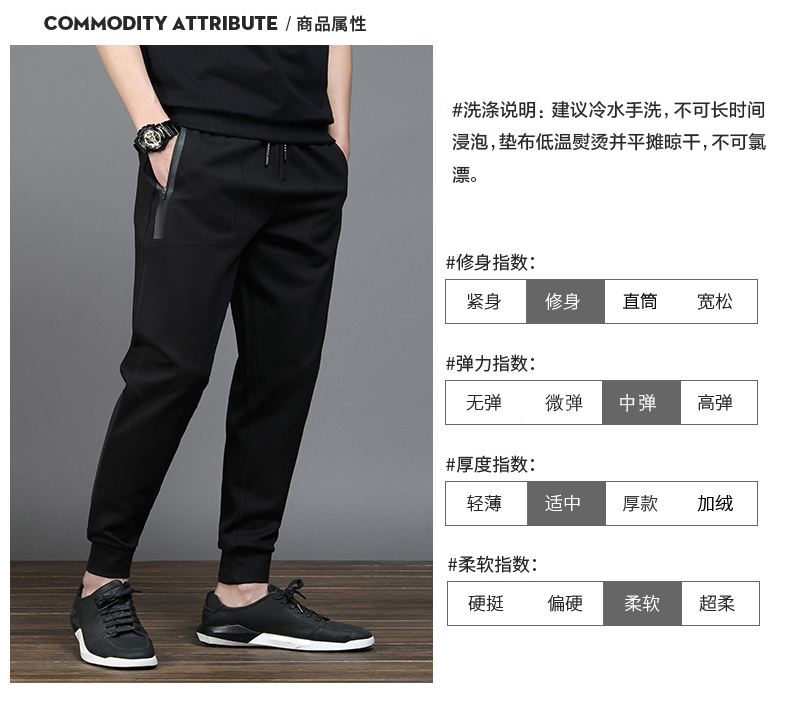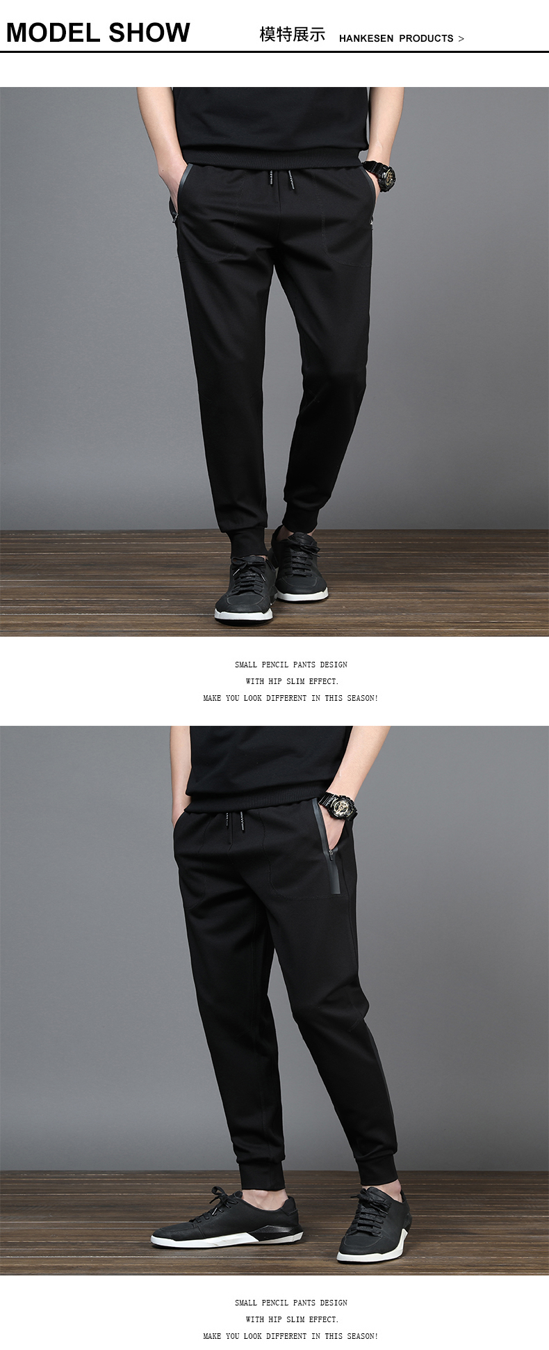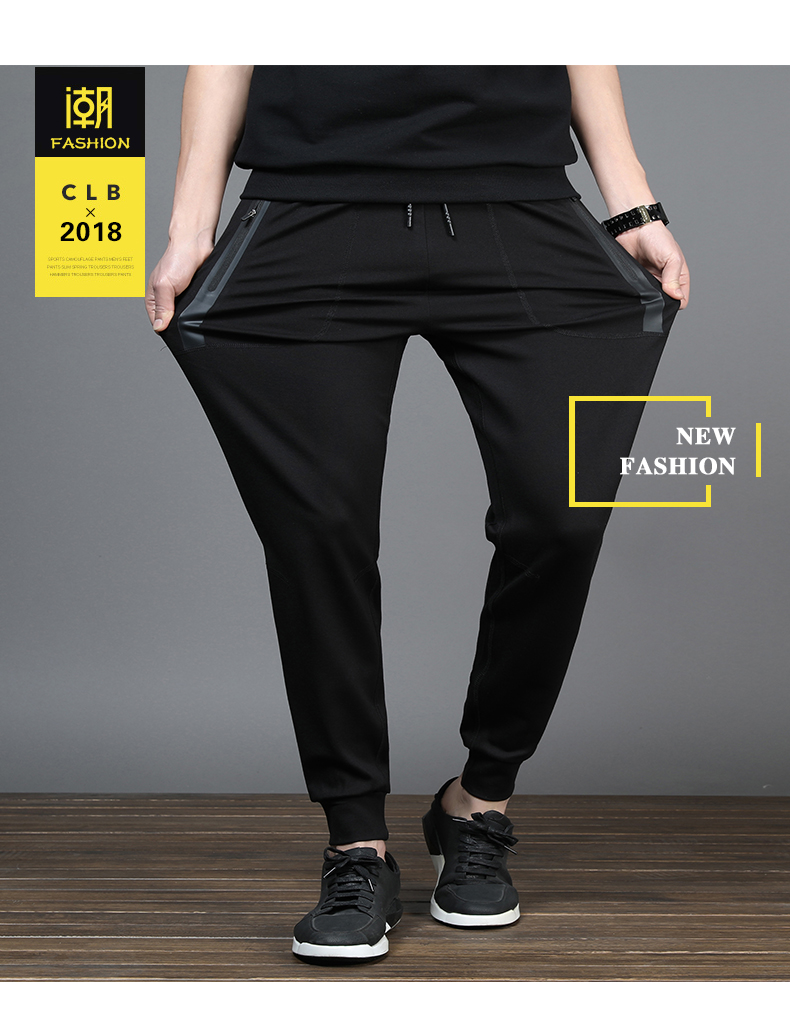 运动裤男潮束脚裤秋冬季休闲长裤子针织棉百搭加绒卫裤收口小脚裤