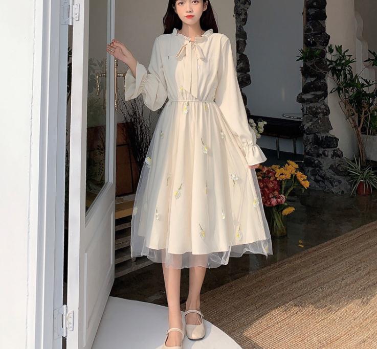 可盐可甜连衣裙女装秋装2020年新款温柔风裙子秋季收腰气质中长裙