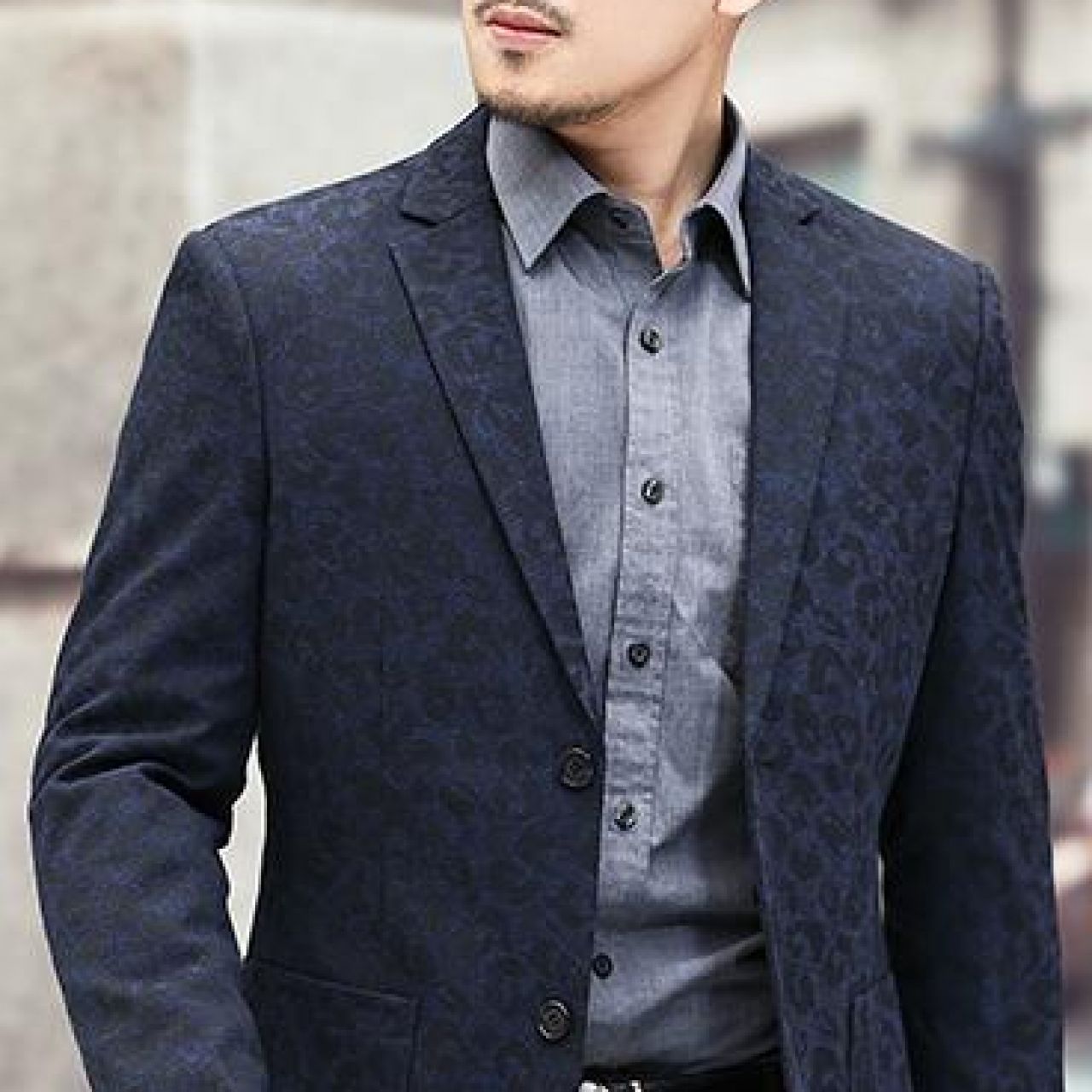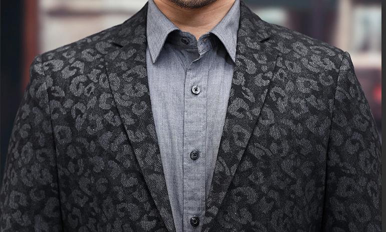2020秋季新款西装时尚休闲印花休闲西服男帅气潮流男装春秋外套男 进口面料