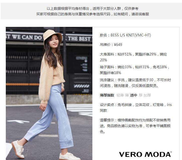 Vero Moda兔毛拼接立体花纹毛衣针织衫女319413501