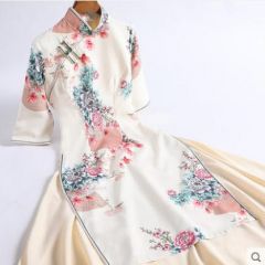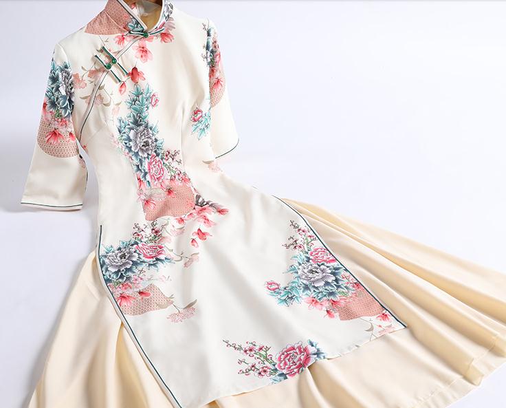 戚薇改良旗袍2020年新款中国风连衣裙秋季长款奥黛日常年轻款少女