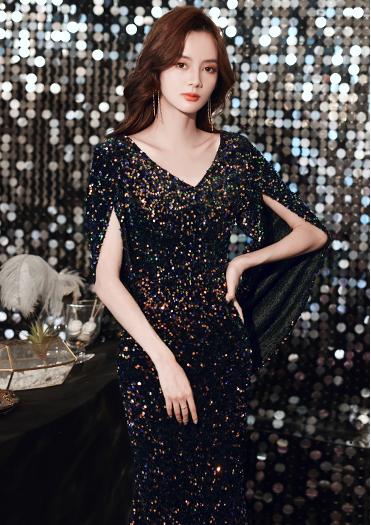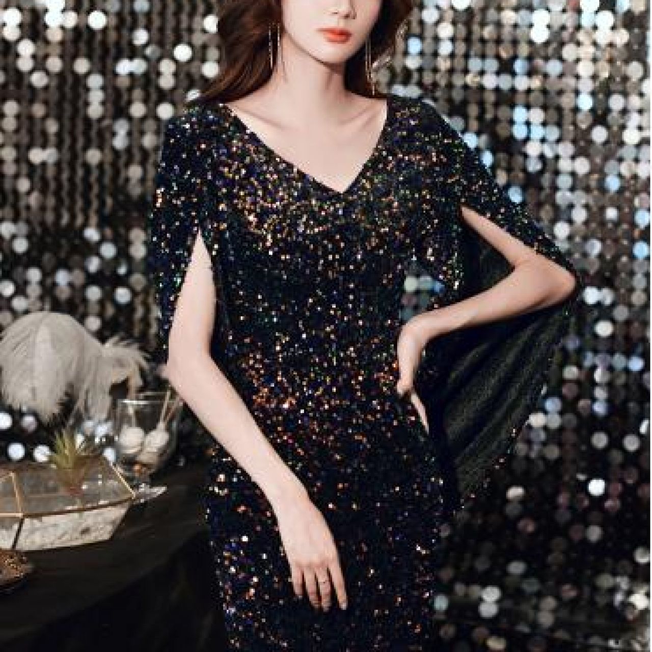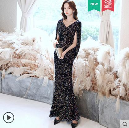 主持人宴会晚礼服女2020新款高端气质亮片鱼尾派对连衣裙冬季长款